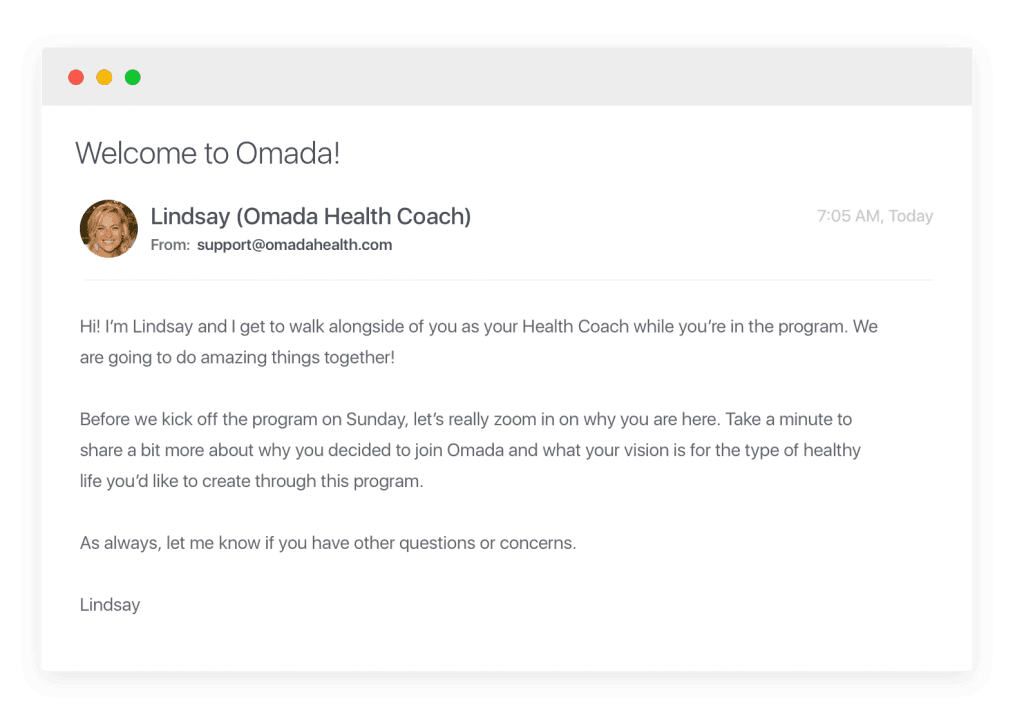 At Omada, we’ve built a deliberately long on-ramp that typically starts with our marketing materials, landing pages, and risk screener. Once accepted into the program, the participant segues to “week 0” onboarding, guided by their personal health coach. These early touchpoints allow us to connect with the wide variety of individuals considering our program, and ensure that each trusts that Omada is a safe place to build a healthier lifestyle, one habit at a time.