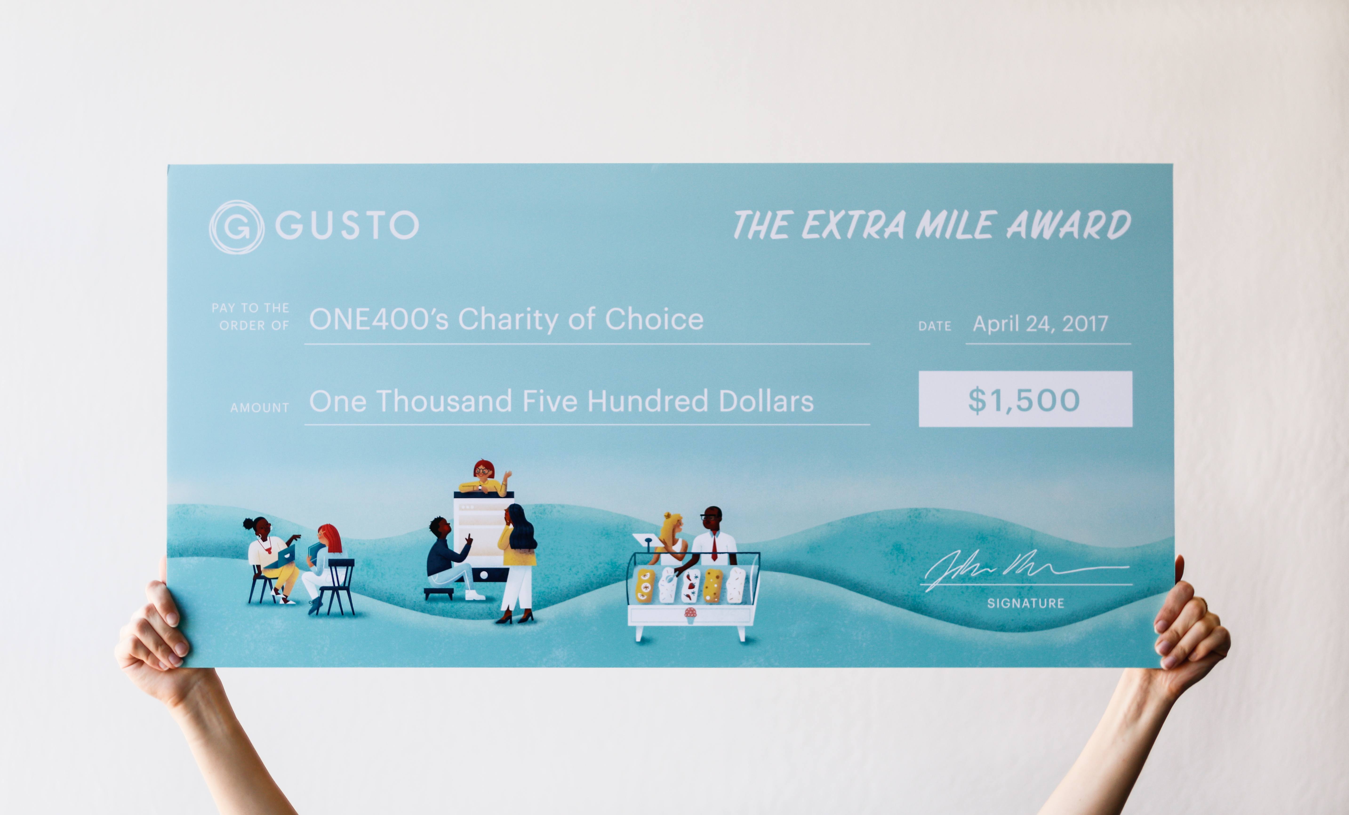 Jenna: We created the Extra Mile Award to celebrate business owners who went above and beyond to take care of their team. We drove in an RV for two weeks— from San Francisco to Jacksonville, Florida— to interview these 11 winners and present them with a $1,500 check to donate to a charity of their choice.