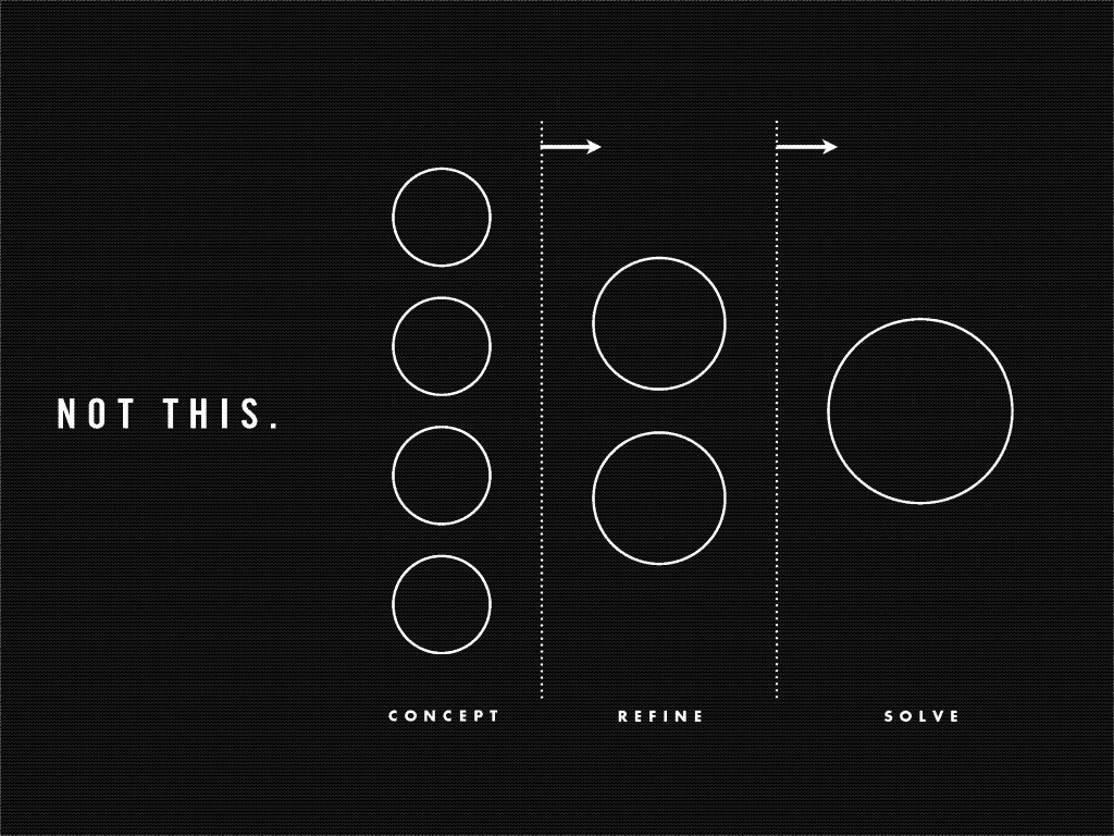Once you’ve defined your problem and a system for working on it, it’s time to start exploring. Don’t get stuck on the unknowns: it’s important to just start testing out a lot of different things to get the basic idea across, and iterate accordingly.