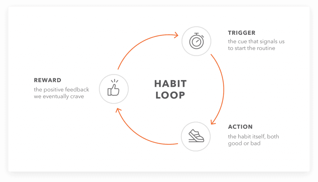 For example, multiple behavior change frameworks leverage the idea of a “habit loop,” which suggests every successful habit operates cyclically with 3 core components: a cue, a routine, and a reward. To put this framework into practice, you could structure your next brainstorm around (1) what triggers to use to remind your user to start the habit (existing or new), (2) the routines or behaviors you’re looking to create, and (3) how you’re going to reward users when they’ve completed the routine.