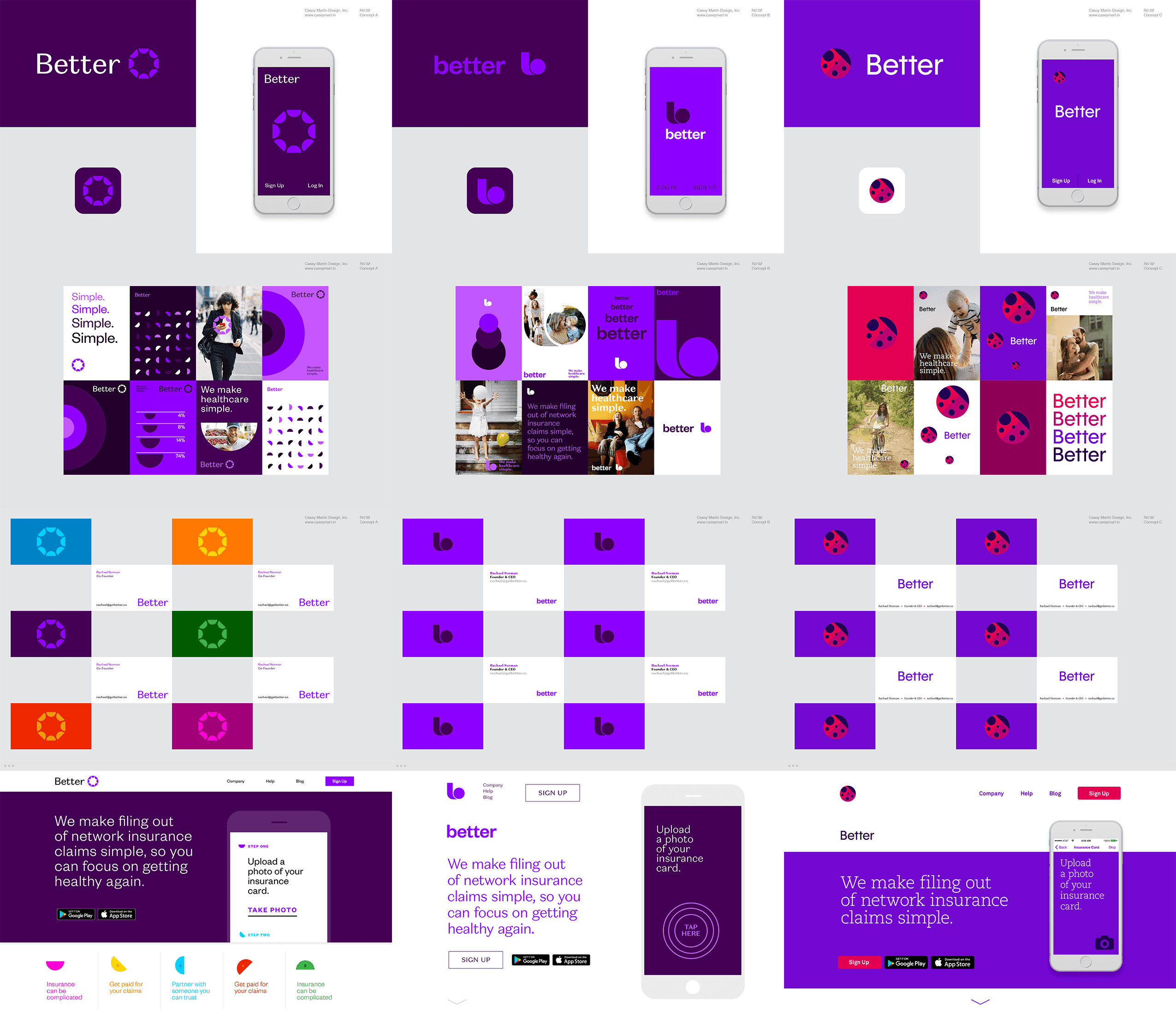 We began by developing what we called “Brand Pillars” –– essentially, distilling what Better wanted to represent and be identified by. As a client, Better was very open and cooperative. I have to really celebrate their willingness to be true to the principle of simplicity. Dealing with health insurance creates a lot of frustration for people, who often just give up. But that’s what Better solves. They made themselves accountable to a tack-sharp focus on clarity and simplicity in every facet of their brand. Which, for a designer, is absolutely fantastic to work with.