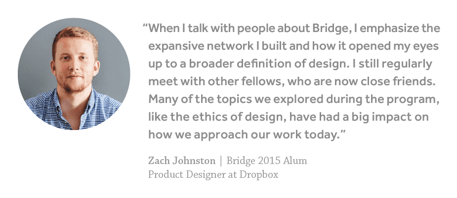 We’re excited to announce an evolution of Bridge in 2017, which will enable us to impact more designers than ever before. This year, we’ll be hosting three Bridge programs that focus on different design disciplines: Product Design, Product & Communication Design, and Design Management.
