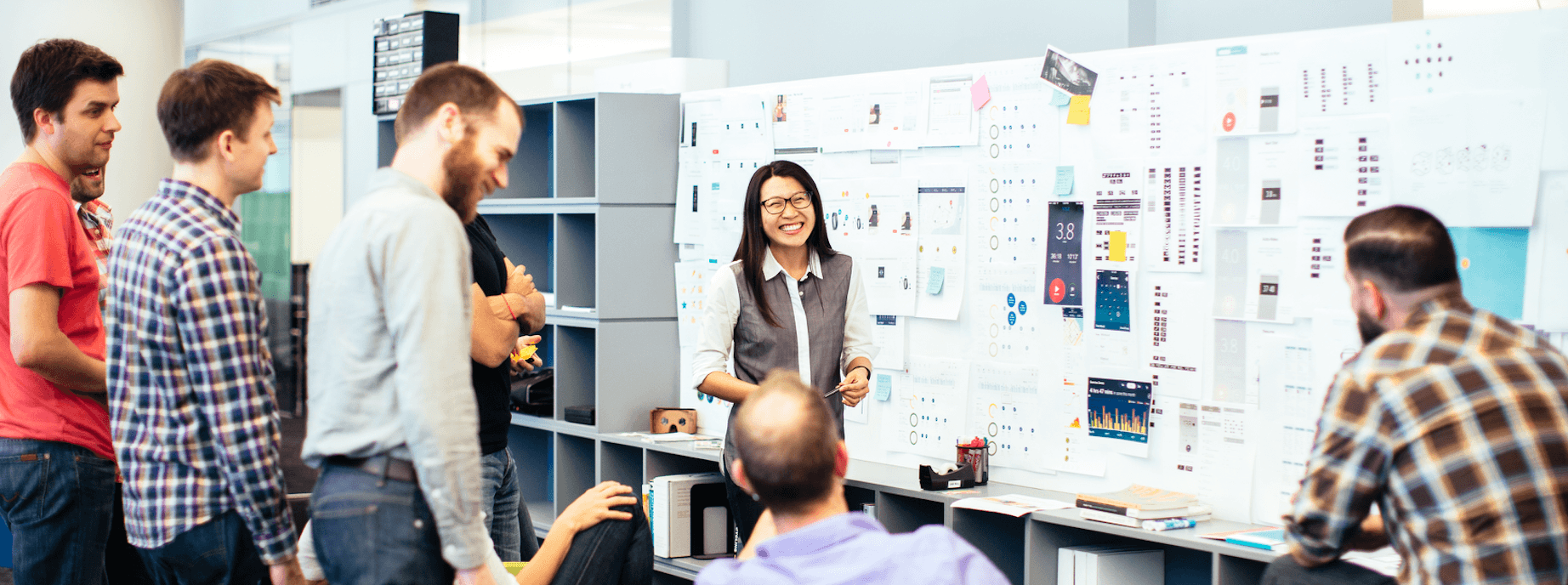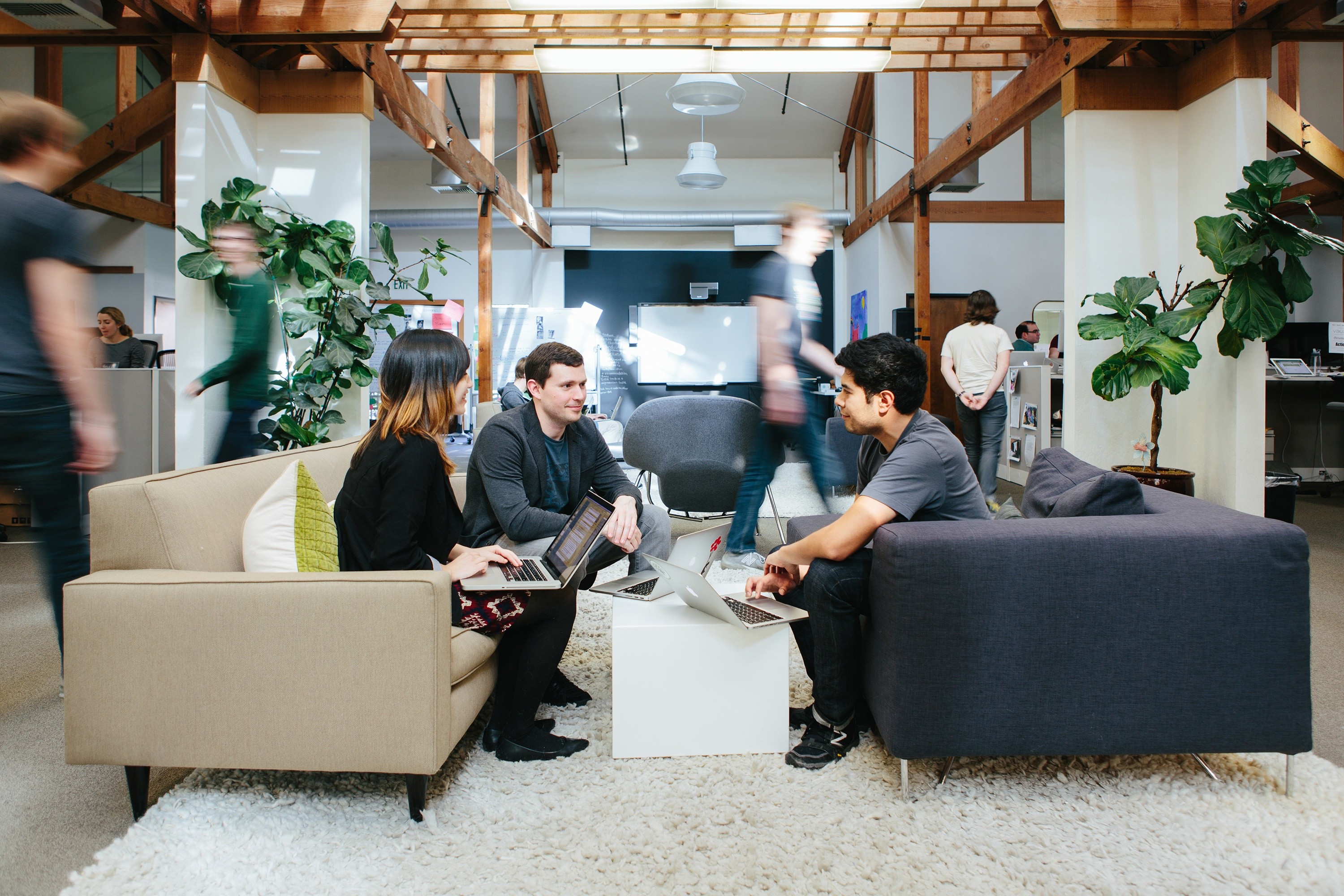 As your team grows, what might have once been a stand-up or a crowd-around-the-desk type of critique may now be an hour scheduled behind closed doors. Seemingly small changes to a physical space can have large effects on the feel of a meeting. “The large conference room setting felt too formal” for the Asana design team, said Amanda, “so we re-located to a smaller open space with floor seating.” The change was transformative. Gathering the team in a more intimate space with comfortable seating influenced the spirit of the meeting in a positive way.