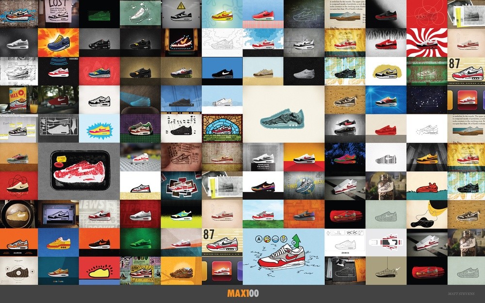 With Matt’s MAX100 project, he focused on a single image — the iconic Nike sneaker — and reinterpreted it 100 times.