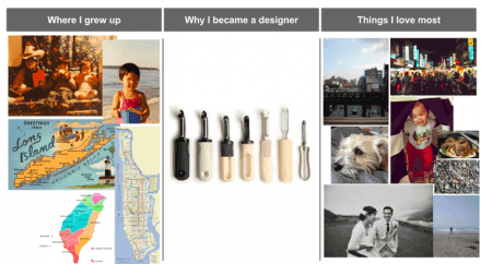 A few new designers joined around the time I did, and as a team, we hadn’t yet connected outside of our day-to-day work. I wanted us to be able to relate as people, so early on, I asked each designer to create a slide about themselves and present it. They talked about where they grew up, why they became a designer or a writer or a researcher, and what kinds of things they loved.