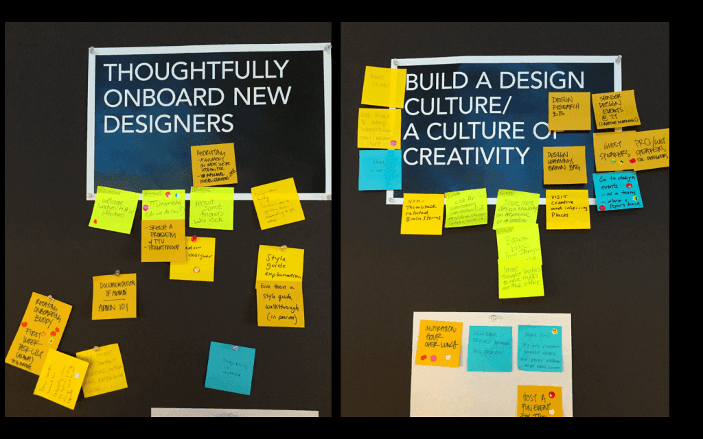 We also instituted a design showcase every other Friday where designers can share their work with colleagues. It’s not a crit, there’s no feedback, there’s no time for Q&A. It just lets them get excited about the work and see their contribution to the team.